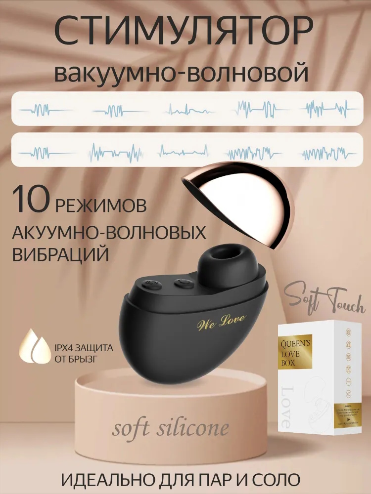 Это элегантный вакуум‑волновой стимулятор Queen’s Love Box в чёрном цвете, созданный для точной клиторальной стимуляции без прямого давления, что дарит быстрые и глубокие оргазмы с минимальной нагрузкой на чувствительные зоны. Мягкая насадка из приятного на ощупь силикона плотно прилегает к телу и направляет волны точно в нужную точку, обеспечивая деликатный захват и комфорт даже при длительных сеансах. В арсенале 10 разнообразных режимов и 2 уровня интенсивности для каждого — можно выбрать более мягкое или более мощное ощущение под настроение и сценарий прелюдии. Управление интуитивно понятное: удерживать кнопку питания 2 секунды для включения, переключать режимы, а отдельной кнопкой усиливать или ослаблять интенсивность на лету. Встроенный аккумулятор заряжается от Type‑C (кабель в комплекте), поэтому устройство всегда готово к использованию дома и в поездках. В наборе также идёт практичный мешочек для хранения, а золотая защитная крышечка сохраняет гигиеничность насадки и добавляет чувственной эстетики — такой аксессуар приятно дарить и ещё приятнее получать.